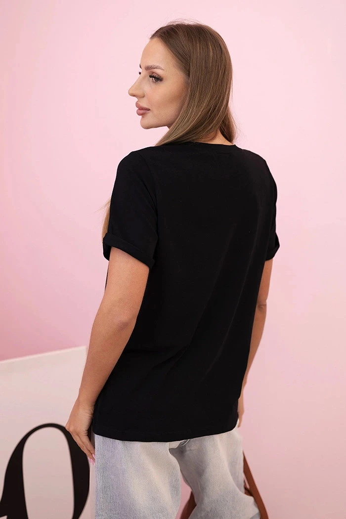 Přidání recenze k Dámská bavlněná blůza s krátkým rukávem a barevným potiskem černá