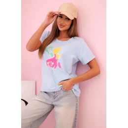 Přidání recenze k Dámská bavlněná blůza s krátkým rukávem a barevným potiskem modrá