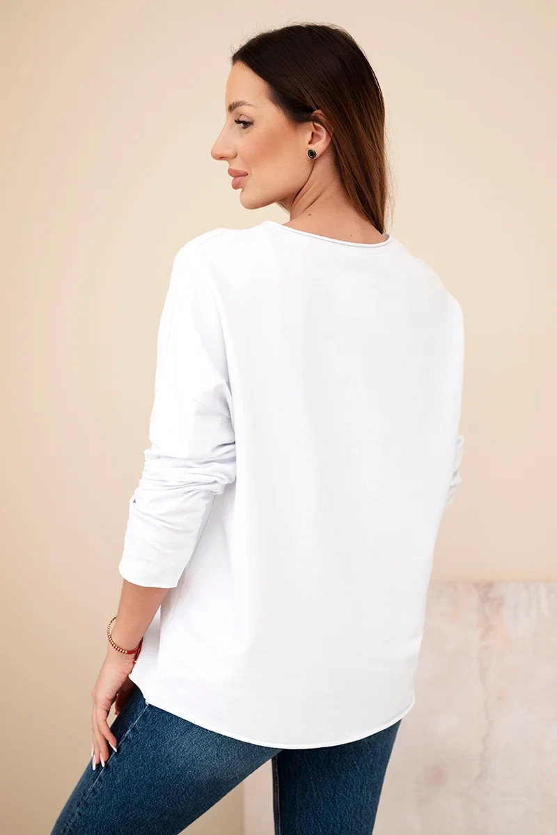 Pokud hledáte pohodlnou a stylovou blůzu ideální na každodenní nošení – tento model bude trefou do černého! Dámská blůza s výstřihem do V okouzluje jemnými, vyšívanými květinami na přední straně, které jí dodávají kouzlo a ženský charakter. Vyrobena z měkké, elastické bavlny zaručuje komfort nošení po celý den. Dlouhý rukáv a volnější střih zajišťují, že blůza skvěle padne na postavu a hodí se k různým stylizacím – jak k džínům, tak k sukním.