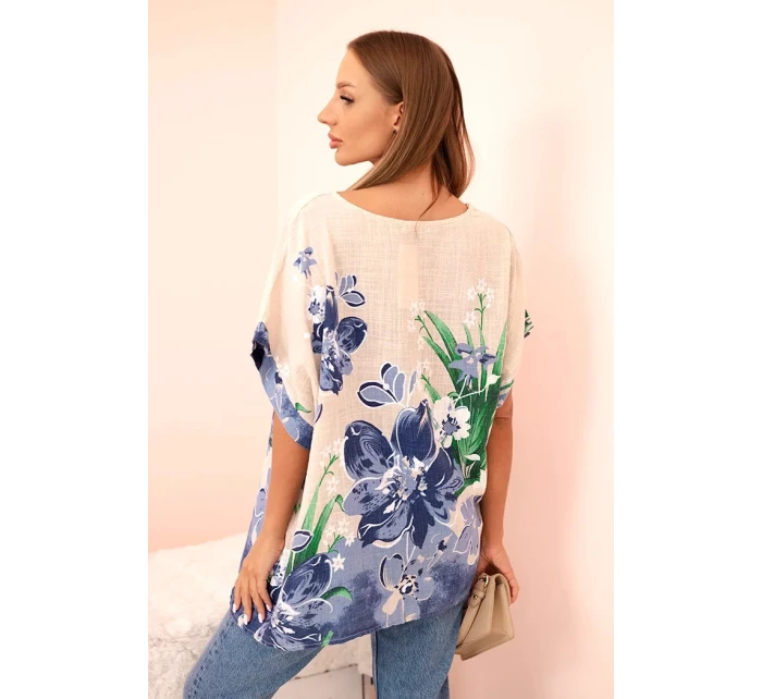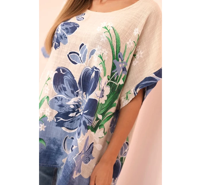 Dámská bavlněná blůza s květinovým potiskem a krátkým rukávem béžová