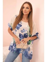 Přidání recenze k Dámská bavlněná blůza s květinovým potiskem a krátkým rukávem béžová