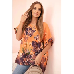 Dámská bavlněná blůza s květinovým potiskem a krátkým rukávem oranžová