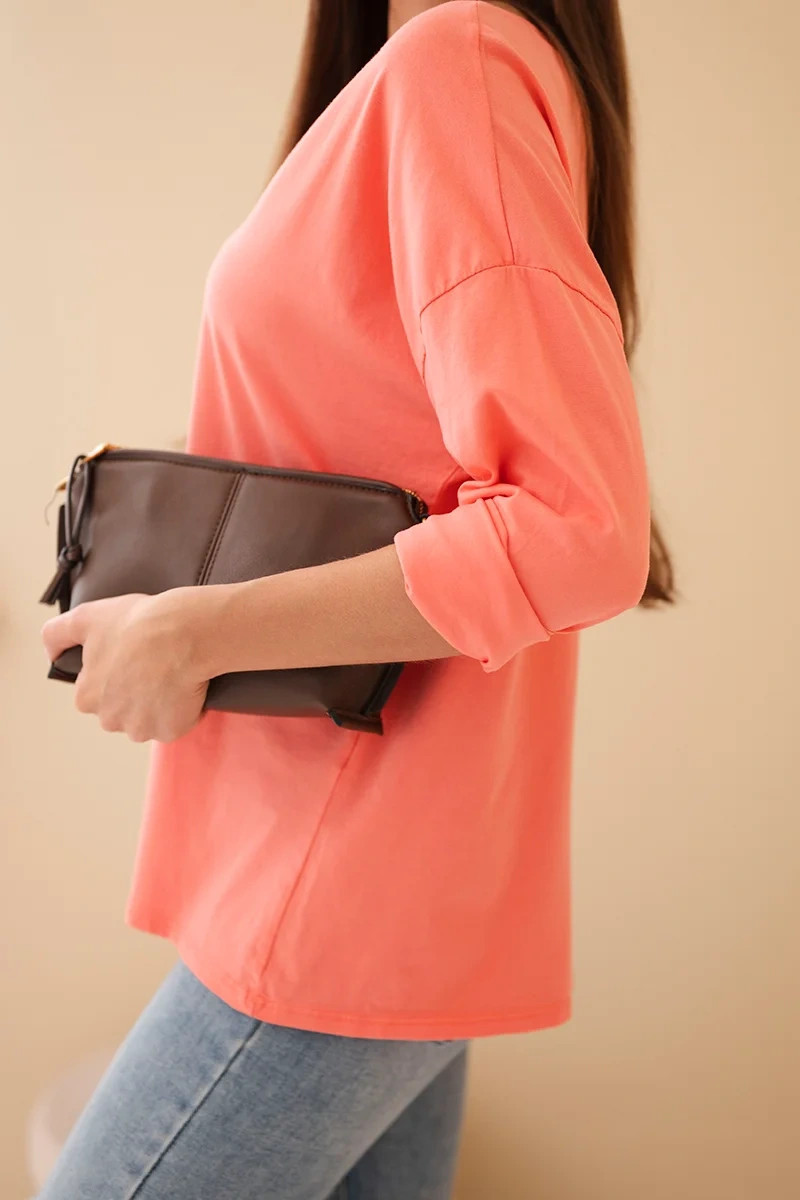 Dámská bavlněná blůza s výstřihem do V a dlouhým rukávem korálová