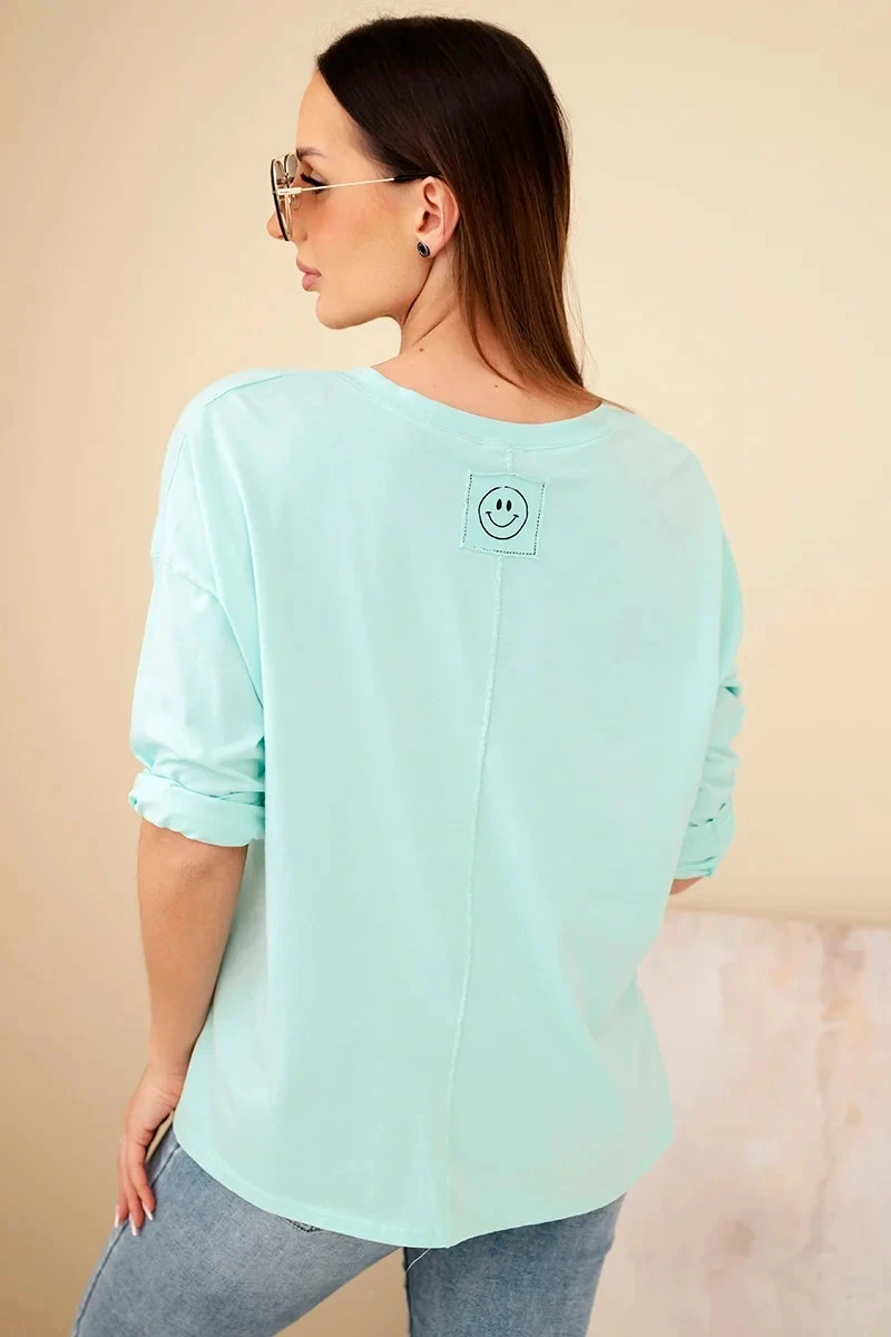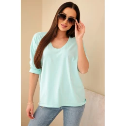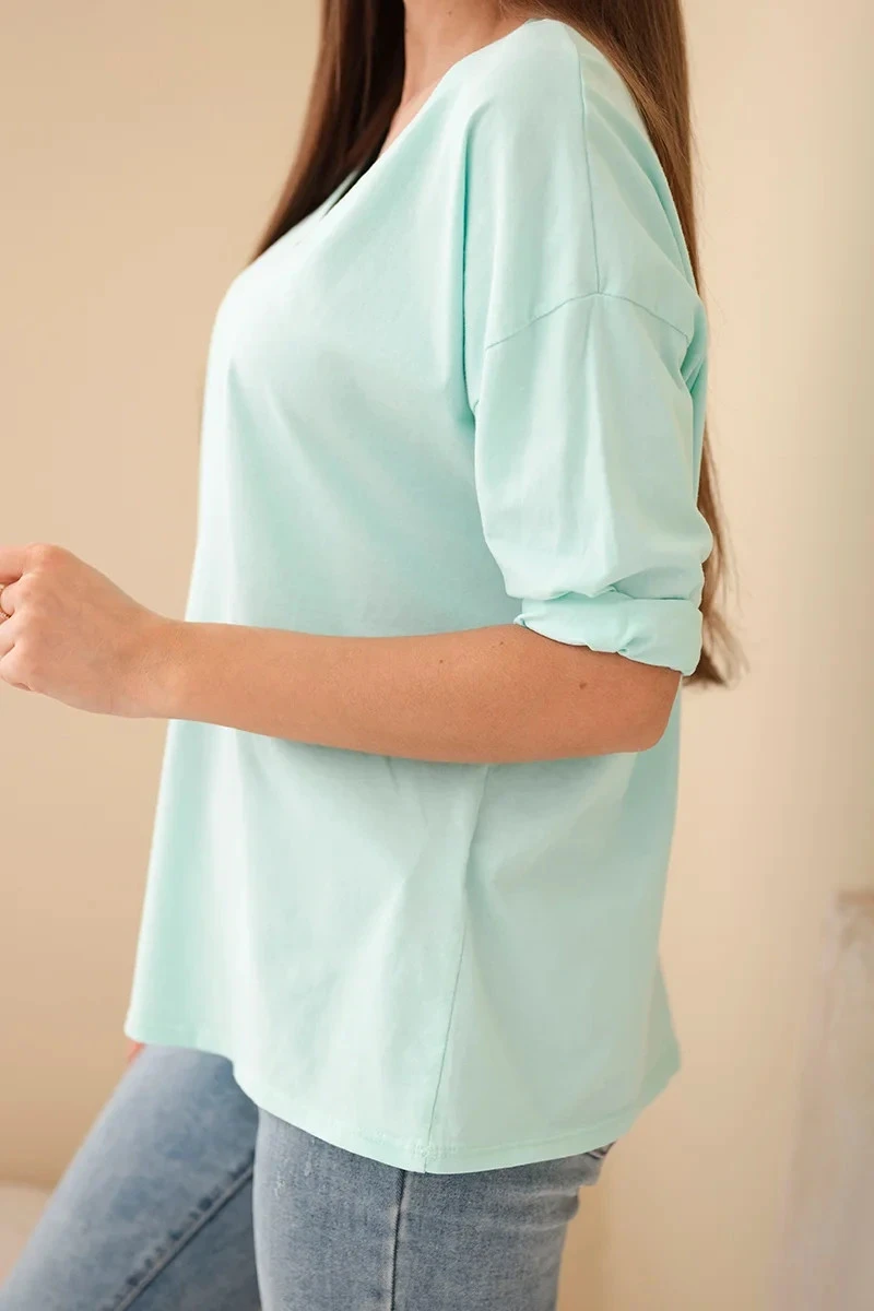 Dámská bavlněná blůza s výstřihem do V a dlouhým rukávem mátová