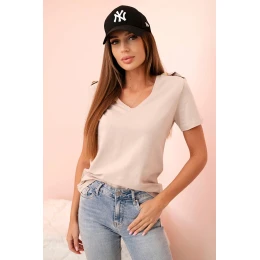 Dámská bavlněná blůza s výstřihem do V a krátkým rukávem béžová