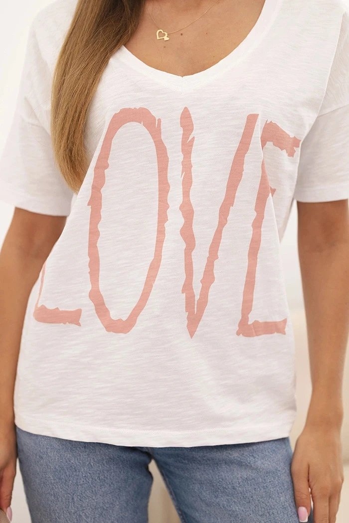 Dámská bavlněná blůza s výstřihem do V a potiskem LOVE bílá