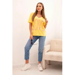 Dámská bavlněná blůza s výstřihem do V a potiskem LOVE žlutá