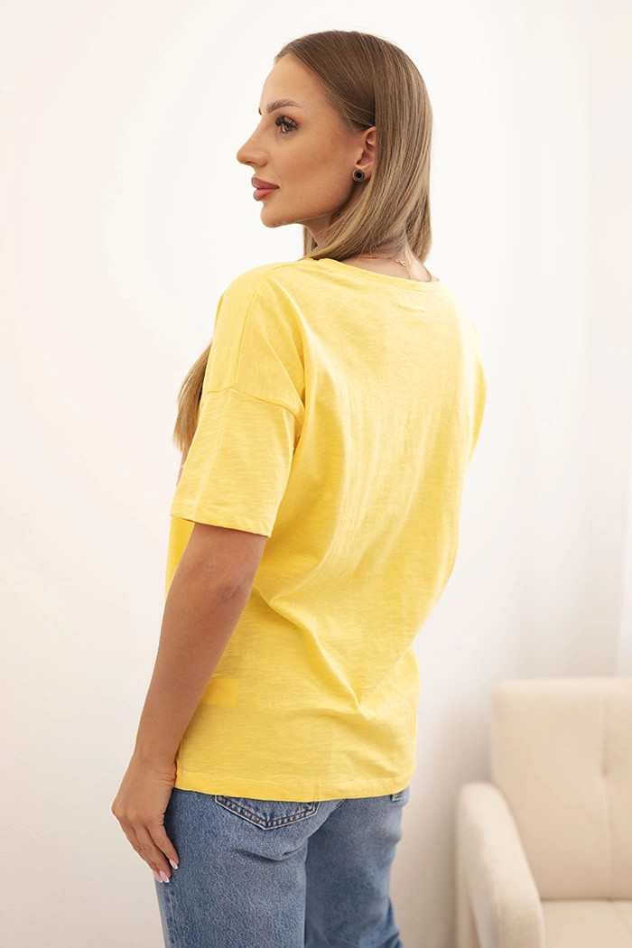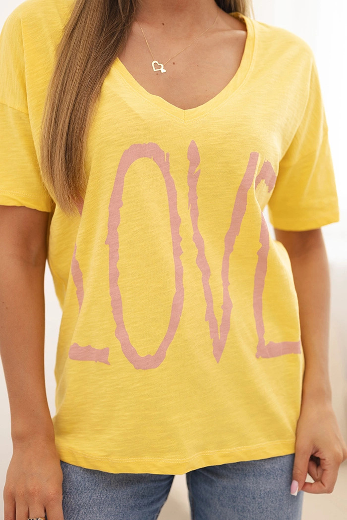 Dámská bavlněná blůza s výstřihem do V a potiskem LOVE žlutá