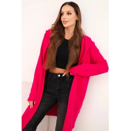 Dámská bavlněná bunda s kapucí a prodlouženým předním dílem fuchsie