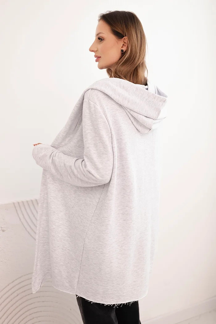 Dámská bavlněná bunda s kapucí a prodlouženým předním dílem světlá šedá