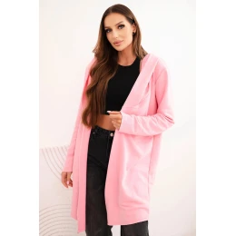 Dámská bavlněná bunda s kapucí a prodlouženým předním dílem světle růžová