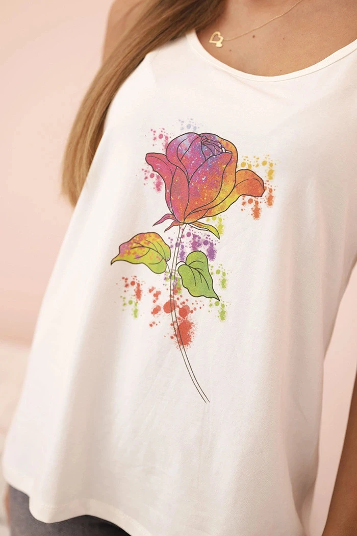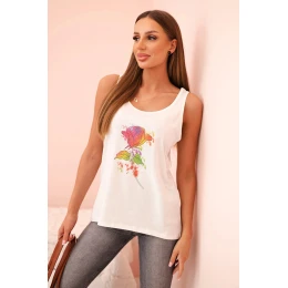 Dámská bavlněná halenka na ramínka s květinovým potiskem ecru