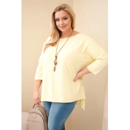 Dámská bavlněná halenka plus size asymetrická s náhrdelníkem žlutá meruňková