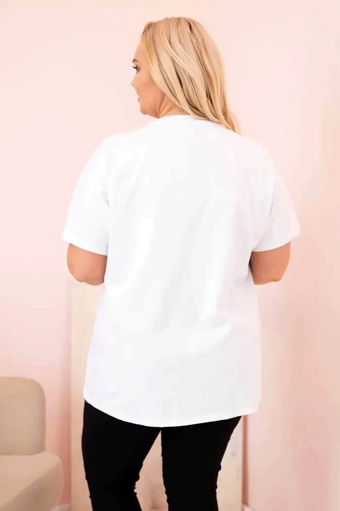 Dámská bavlněná halenka Plus Size s kamínky bílá + khaki