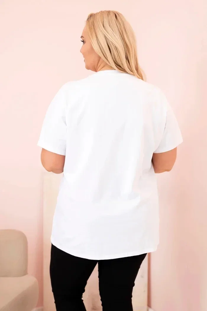 Dámská bavlněná halenka Plus Size s kamínky bílá + tmavě modrá
