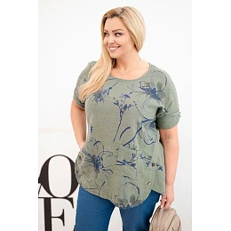 Dámská bavlněná halenka Plus Size s krátkým rukávem a kapsou khaki