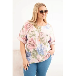 Dámská bavlněná halenka Plus Size s krátkým rukávem a květinovým vzorem pudrově růžová