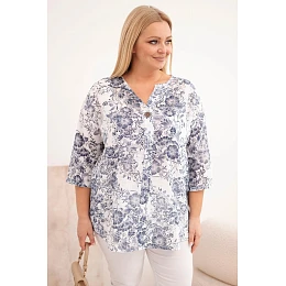 Halenka má volný střih Plus Size, který zajišťuje volnost pohybu a skvělé padnutí na různé typy postav. Kulatý výstřih s jemným rozparkem a ozdobný knoflík dodávají celku decentní eleganci. Krátký rukáv dělá model ideální volbou na léto, dovolené, procházky či každodenní nošení do práce.
