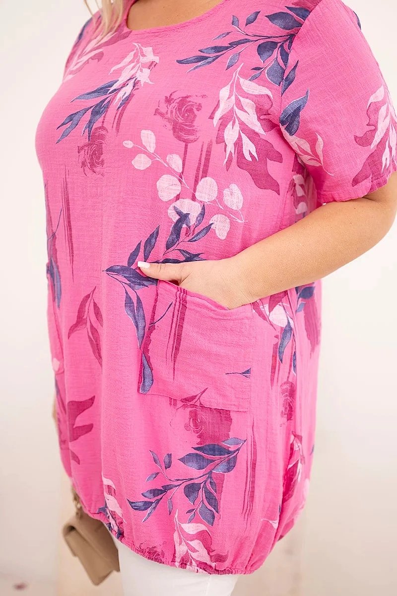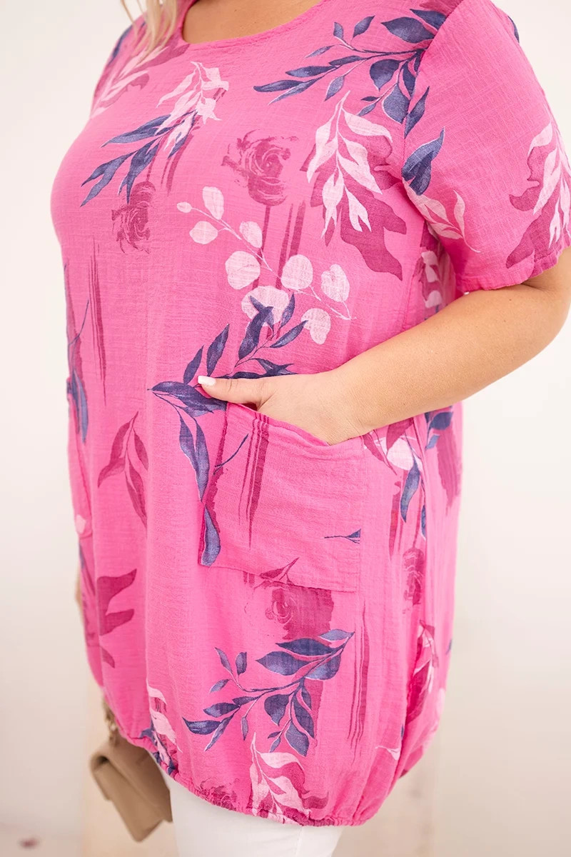 Dámské bavlněné tričko plus size s krátkým rukávem je ideální volbou pro ženy, které si cení pohodlí, přírodních materiálů a módního vzhledu. Volný střih zajišťuje volnost pohybu a krásně padne na postavu, zatímco jemný rostlinný vzor dodává celku lehkost a svěží charakter.