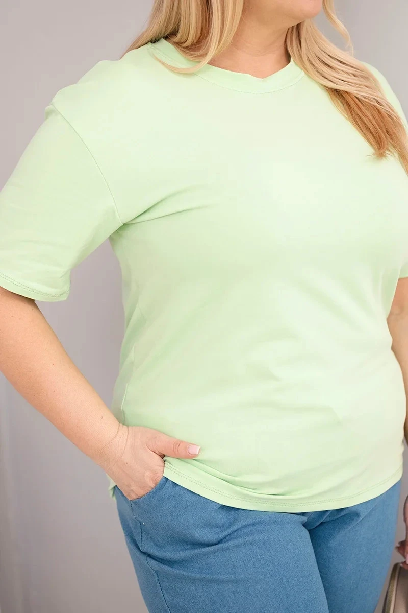 Toto dámské bavlněné tričko plus size by mělo být v každém šatníku. Minimalistický design z něj činí nadčasový a mimořádně praktický kousek. Ideální na každý den, do práce, na procházku nebo setkání s přáteli.