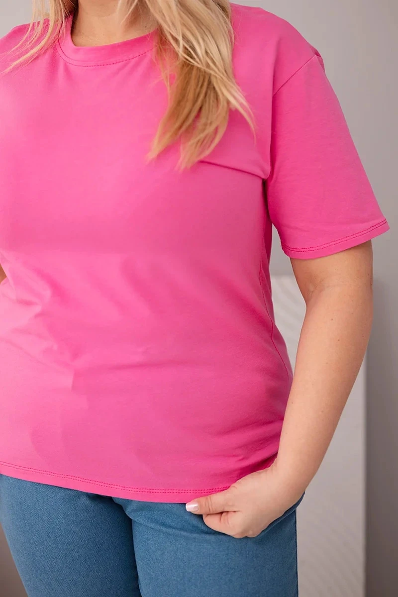 Dámská bavlněná halenka Plus Size s krátkým rukávem basic růžová