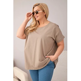 Pohodlná a stylová dámská halenka plus size je ideální volbou pro ženy, které si cení pohodlí a univerzálního stylu. Model s volným oversized střihem se krásně přizpůsobí postavě, zajišťuje volnost pohybu a pohodlí po celý den. Klasický kulatý výstřih dělá halenku nadčasovou a snadno kombinovatelnou s různými kousky oblečení.