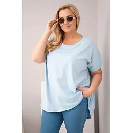 Dámská bavlněná halenka Plus Size s krátkým rukávem modrá