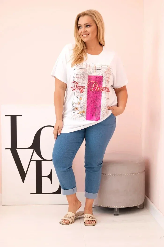 Dámská bavlněná halenka Plus Size s potiskem bílá + růžová model 21175967 - K-Fashion