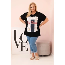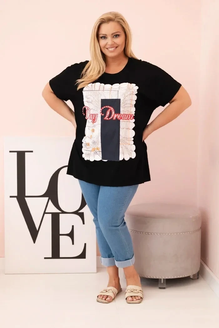 Dámská bavlněná halenka Plus Size s potiskem černá + tmavě modrá model 21175953 - K-Fashion