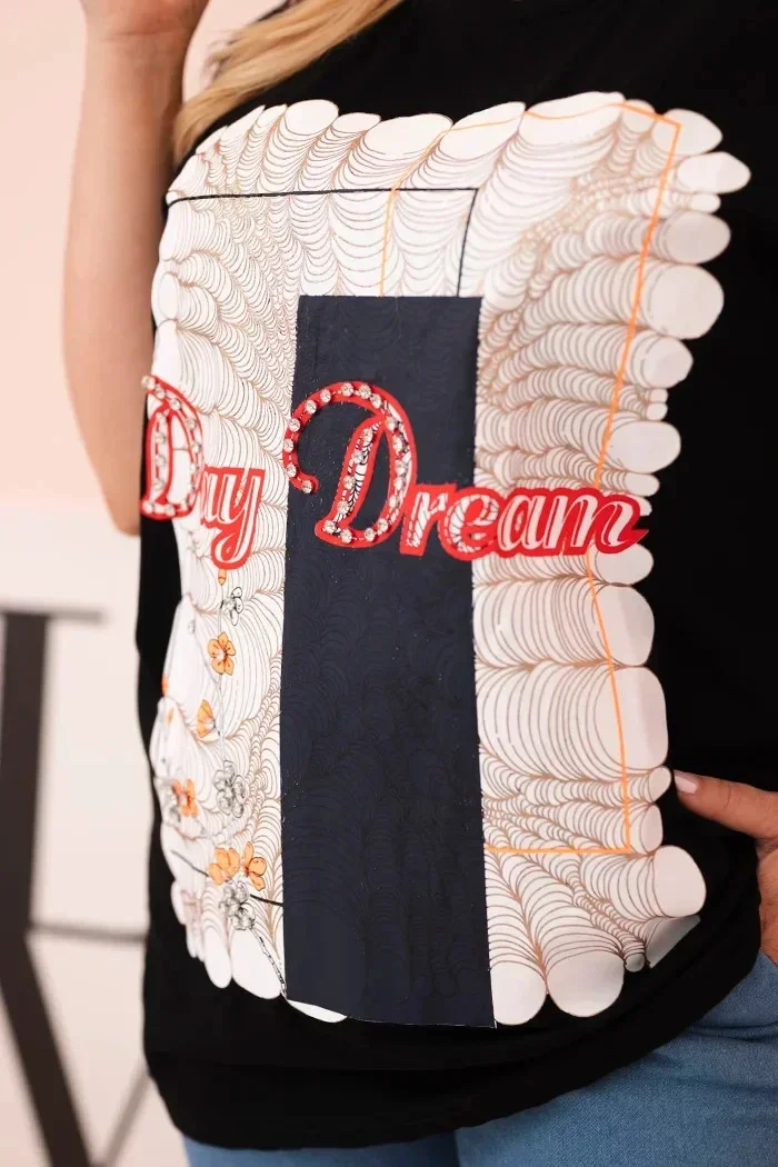- Potisk s nápisem „Day Dream“ s módním grafickým efektem
