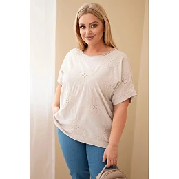 Dámská bavlněná halenka Plus Size s vyšívanými květinami béžová