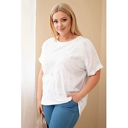 Dámská bavlněná halenka Plus Size s vyšívanými květinami bílá