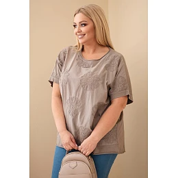 Dámská bavlněná halenka Plus Size je vynikající volbou pro ženy, které si cení pohodlí, přírodních materiálů a módního vzhledu. Model vyniká volným oversized střihem, který zajišťuje volnost pohybu a pohodlí po celý den. Jemné vyšívané květiny dodávají celku výjimečný charakter a dělají halenku velmi ženskou a stylovou. Je to ideální volba jak pro každodenní stylizace, tak na setkání či vycházky, kde jde o lehký, nenucený vzhled.