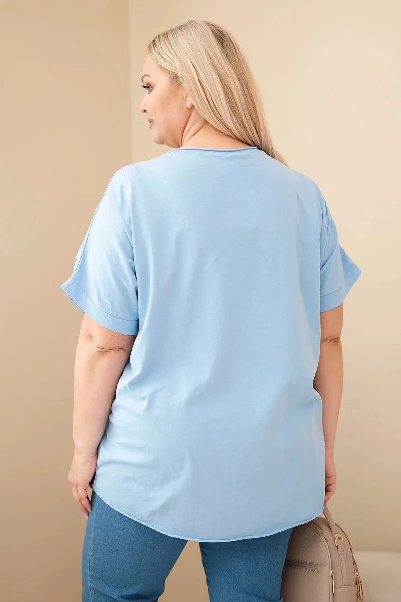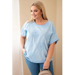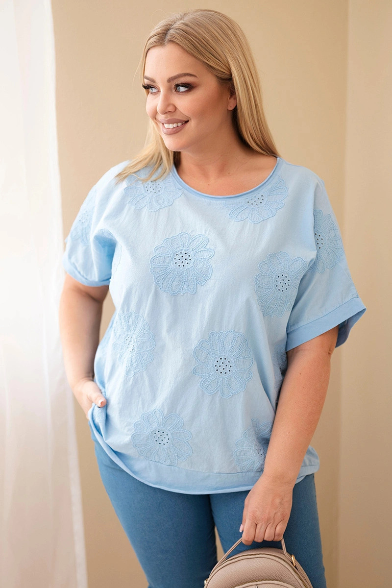 Dámská bavlněná halenka Plus Size s vyšívanými květinami modrá