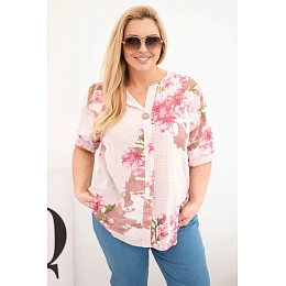 Dámská bavlněná halenka Plus Size s výstřihem do V a květinovým vzorem pudrově růžová