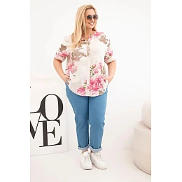 Stylová a mimořádně pohodlná dámská halenka vyrobená z přírodní bavlny je ideální volbou pro teplejší dny. Lehký, prodyšný materiál zajišťuje velmi komfortní nošení, volnější střih se krásně přizpůsobí postavě a poskytuje volnost pohybu po celý den. Model vyniká módním květinovým vzorem, který dodává outfitu ženský charakter a svěžest.
