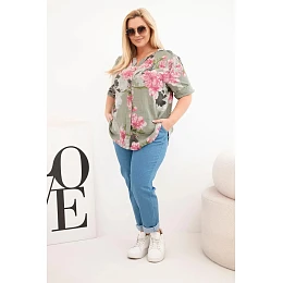 Dámská bavlněná halenka Plus Size s výstřihem do V v model 22043068 vzoru khaki - K-Fashion
