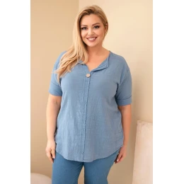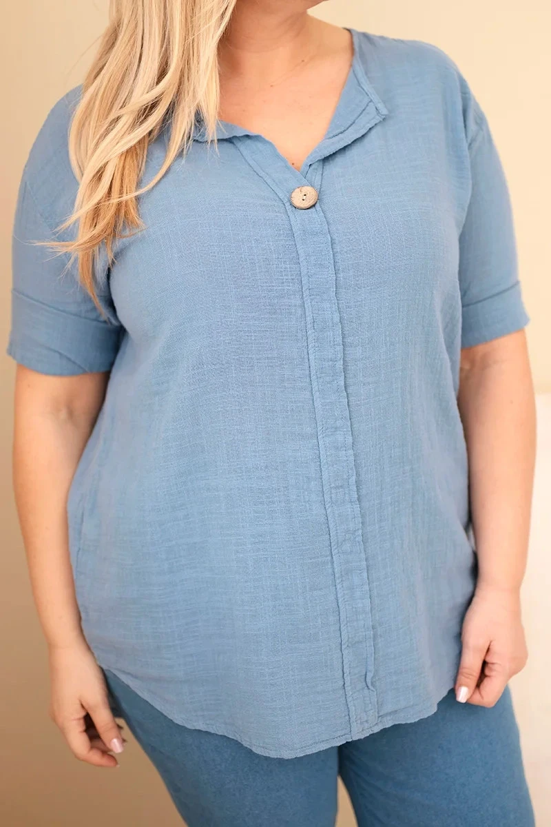 Dámská bavlněná halenka Plus Size s výstřihem na knoflíky džínová