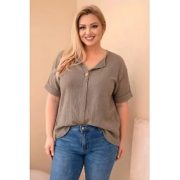 Dámská bavlněná halenka Plus Size s výstřihem na knoflíky fango