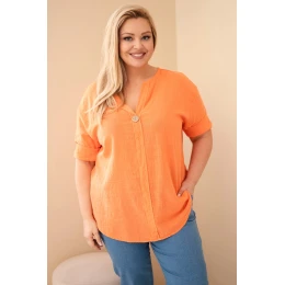 Dámská bavlněná halenka Plus Size s výstřihem na knoflíky oranžová