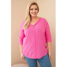 Dámská bavlněná halenka Plus Size s výstřihem na knoflíky růžová