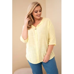 Dámská bavlněná halenka Plus Size s výstřihem na knoflíky žlutá