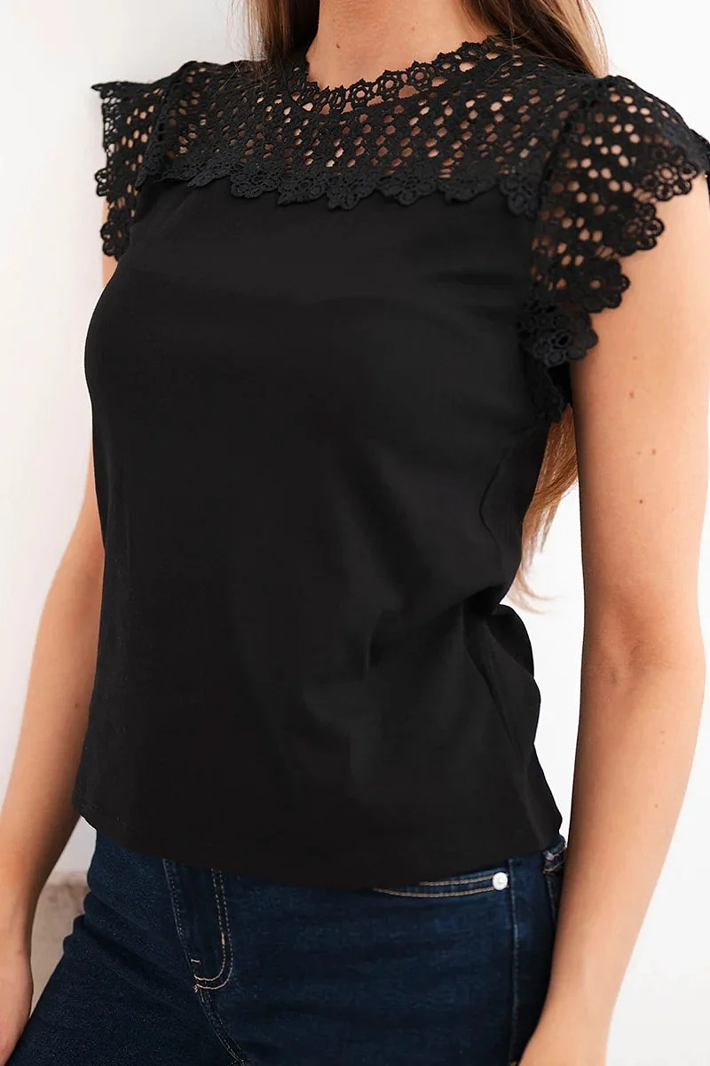 Dámská bavlněná halenka s krajkovým vrchem a krátkým rukávem černá
