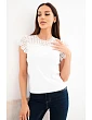 Dámská halenka s krajkovým vrškem a krátkým rukávem je návrhem pro ženy, které si cení kombinace pohodlí a jemné elegance. Model vyniká efektní, průsvitnou krajkou v horní části a u rukávů, díky čemuž působí lehce, ženskě a velmi stylově. Hladký spodní díl z příjemného materiálu na dotek se dobře přizpůsobí postavě a zajišťuje pohodlí po celý den. Je to skvělá volba jak na každý den, tak na rodinná setkání, vycházky s přáteli nebo do práce.