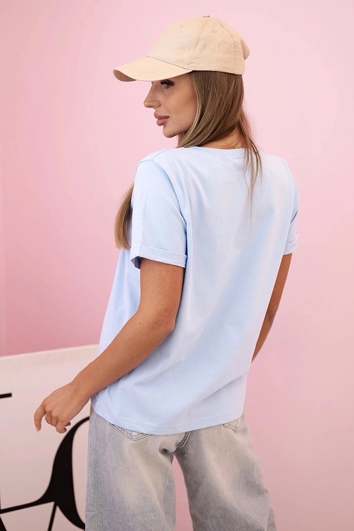 Přidání recenze k Dámská bavlněná halenka s krátkým rukávem a barevným potiskem modrá