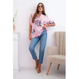Přidání recenze k Dámská bavlněná halenka s květinovým vzorem bonbónově růžová