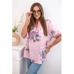 Přidání recenze k Dámská bavlněná halenka s květinovým vzorem bonbónově růžová