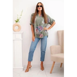 Přidání recenze k Dámská bavlněná halenka s květinovým vzorem khaki