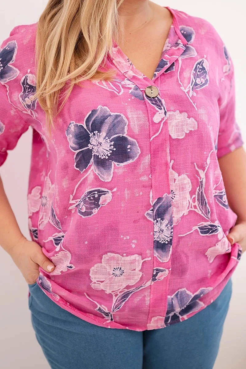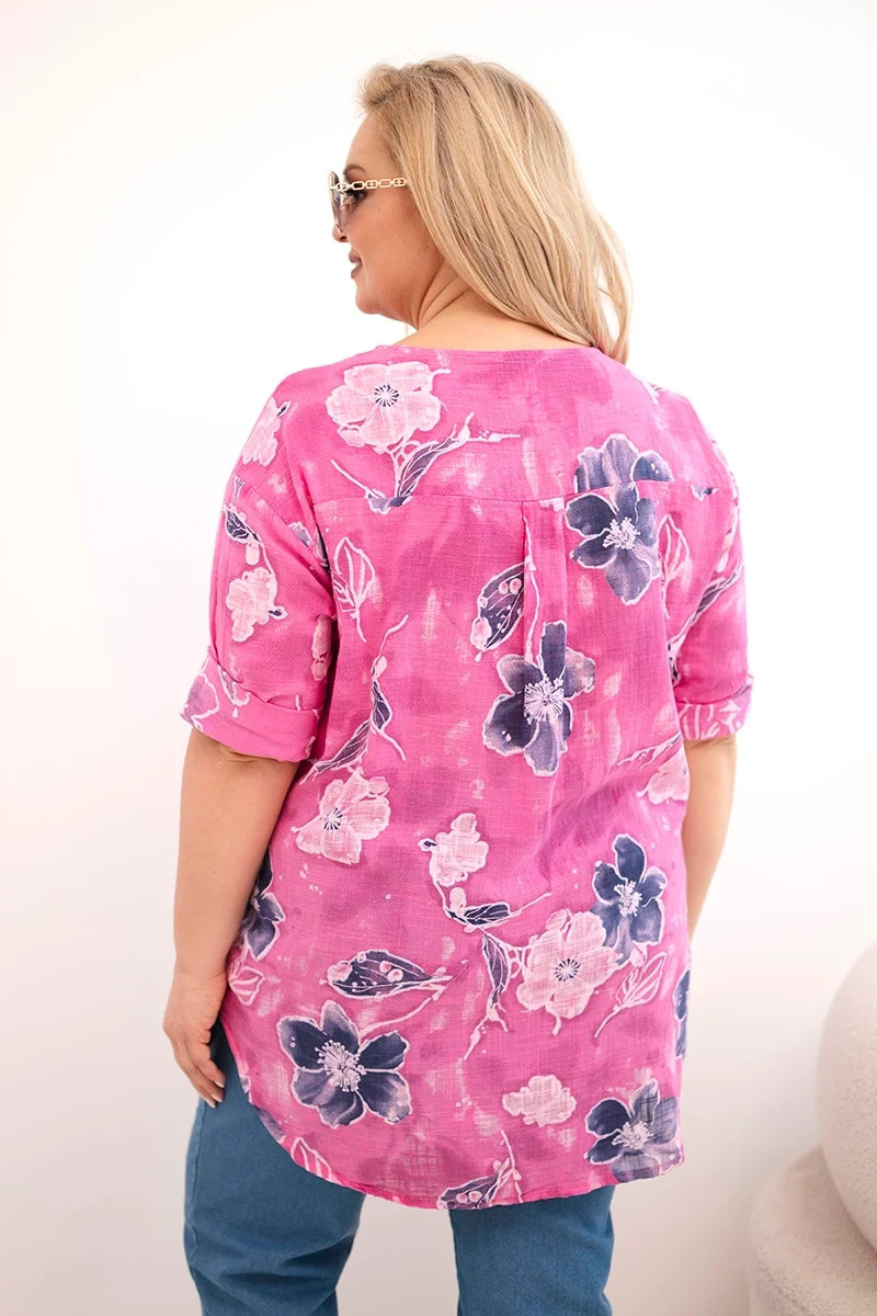 Dámská bavlněná halenka s květinovým vzorem plus size růžová