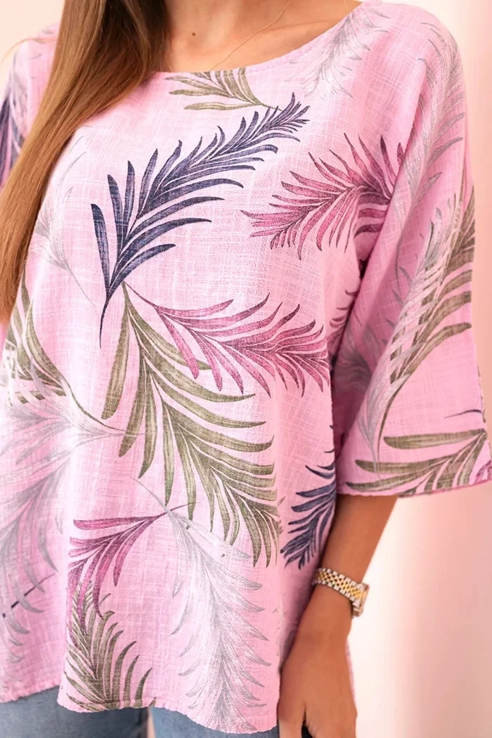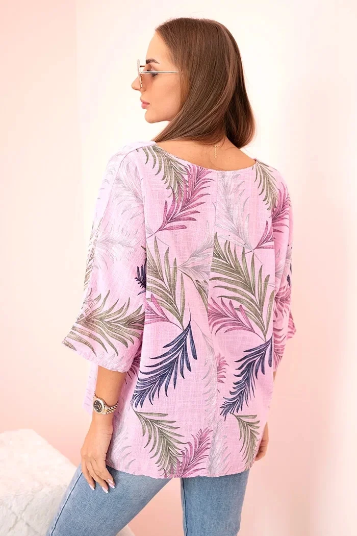 Hledáte lehkou a vzdušnou halenku na teplé dny? Tato dámská bavlněná halenka je skvělou volbou na léto i jaro! Je ušita z přírodní látky, která zajišťuje pohodlí po celý den. Volný střih zajišťuje, že skvěle padne na každou postavu a tropický motiv listů jí dodává prázdninový charakter. Ohrnuté rukávy s knoflíkem jí dodávají stylový vzhled, takže je ideální jak na běžné nošení, tak na setkání s přáteli nebo procházku po městě. Velikost je univerzální a bude vhodná pro dámy velikostí S, M nebo L.
